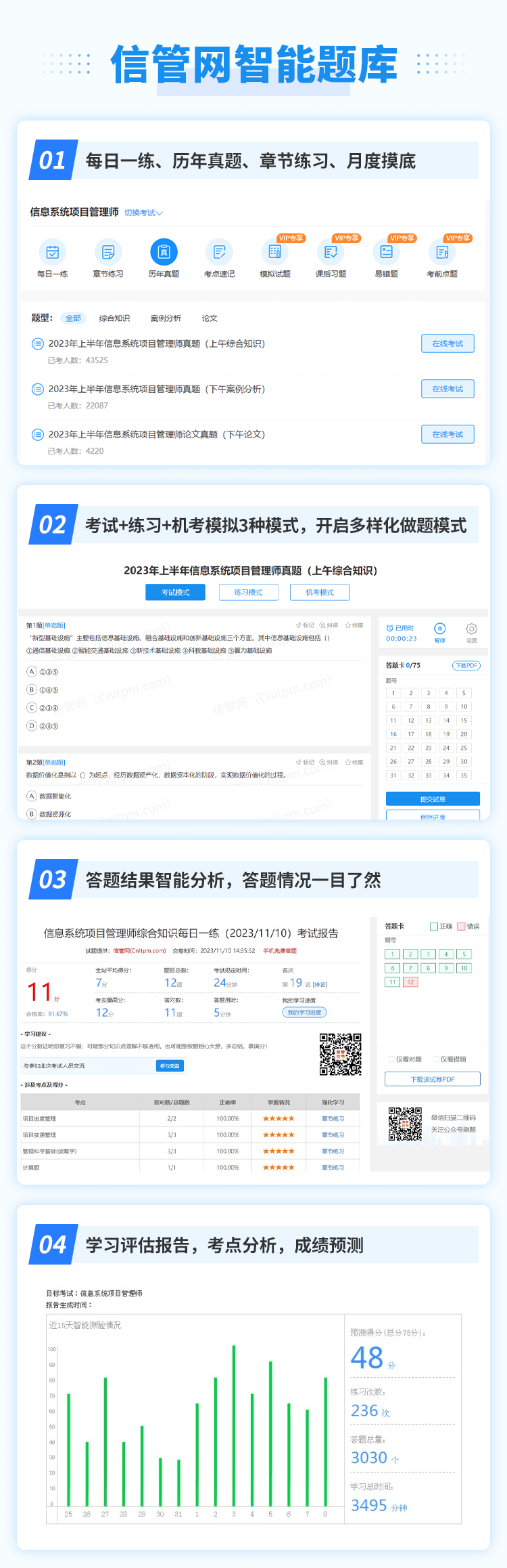 信管網(wǎng)為信息化考試與服務(wù)專業(yè)平臺(tái),目前開設(shè)有信息系統(tǒng)項(xiàng)目管理師、系統(tǒng)規(guī)劃與管理師、系統(tǒng)集成項(xiàng)目管理工程師、信息安全工程師考試與學(xué)習(xí)服務(wù)。提供了包括考試報(bào)名、考試課程、成績查詢、真題發(fā)布、資料下載、案例分析、論文、考試教程、在線題庫、每日一練、章節(jié)練習(xí)、信管人才、論壇交流等服務(wù)。我們將為廣大信管考友提供專業(yè)、及時(shí)、全面、貼心的考試服務(wù),立足于為廣大信管考友建造一個(gè)優(yōu)質(zhì)的學(xué)習(xí)平臺(tái),讓考生都能夠享受學(xué)習(xí),順利通關(guān)。