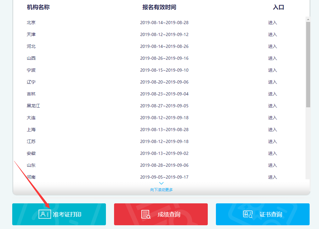 第三步:進(jìn)入報(bào)名入口頁面后,點(diǎn)擊準(zhǔn)考證打印。